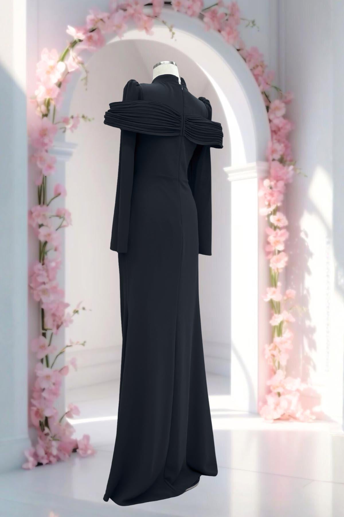 Amine Hüma Dila Abiye Elbise Siyah (3664)