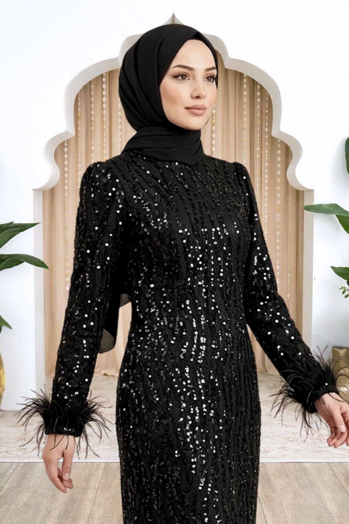Amine Hüma Eslem Abiye Elbise Siyah (3668)