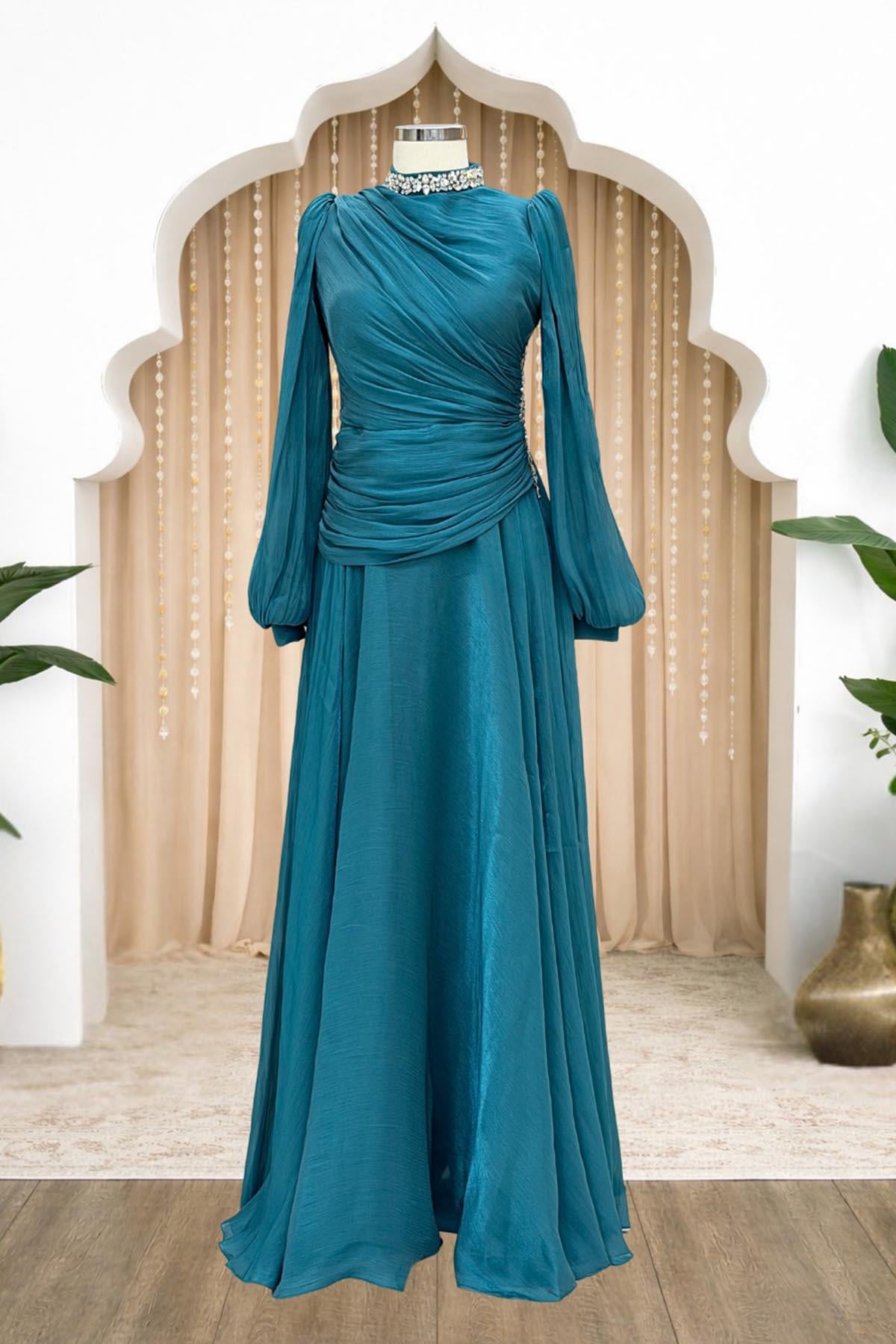 Amine Hüma Nergis Abiye Elbise Petrol (3635)