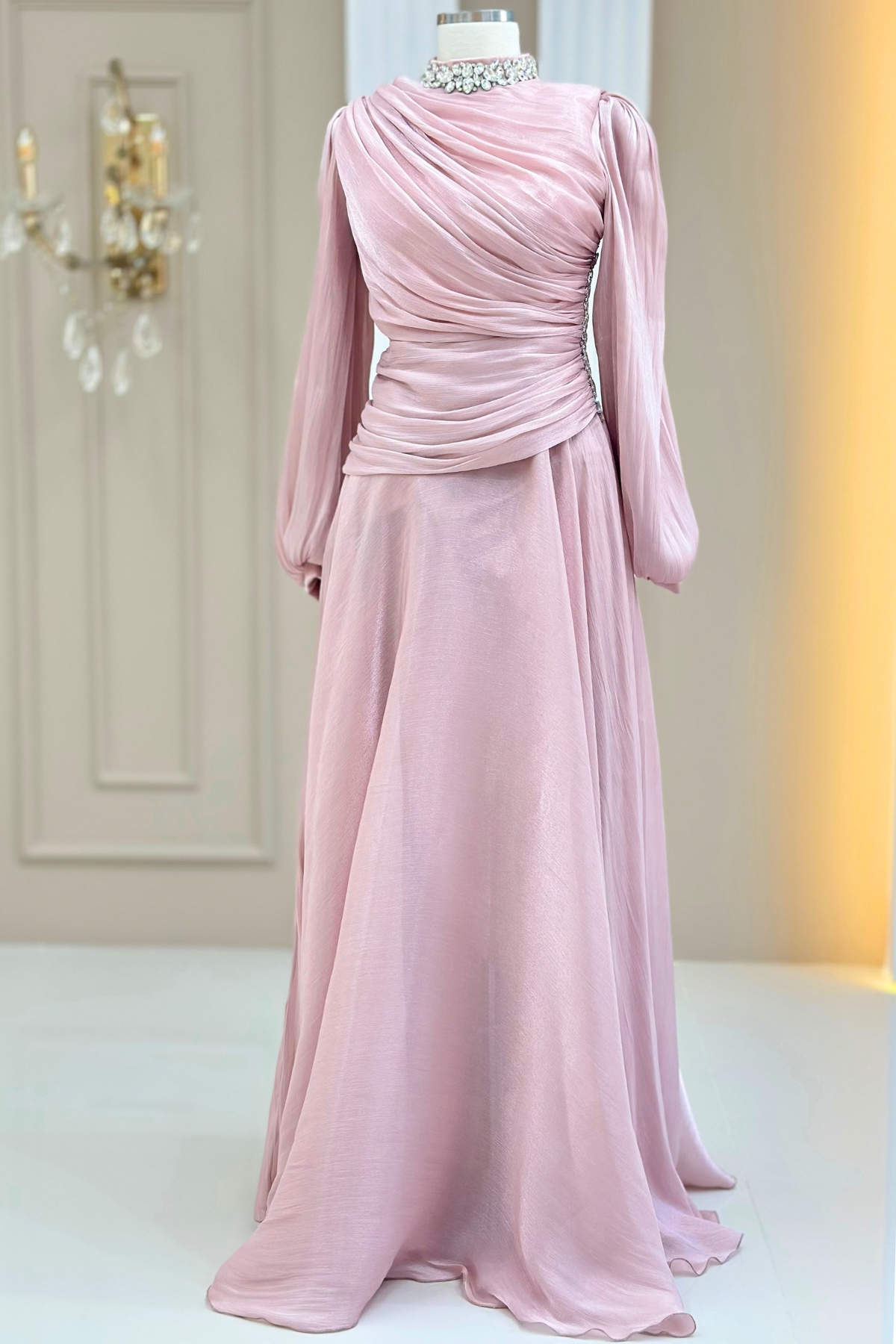 Amine Hüma Nergis Abiye Elbise Pudra (3635)