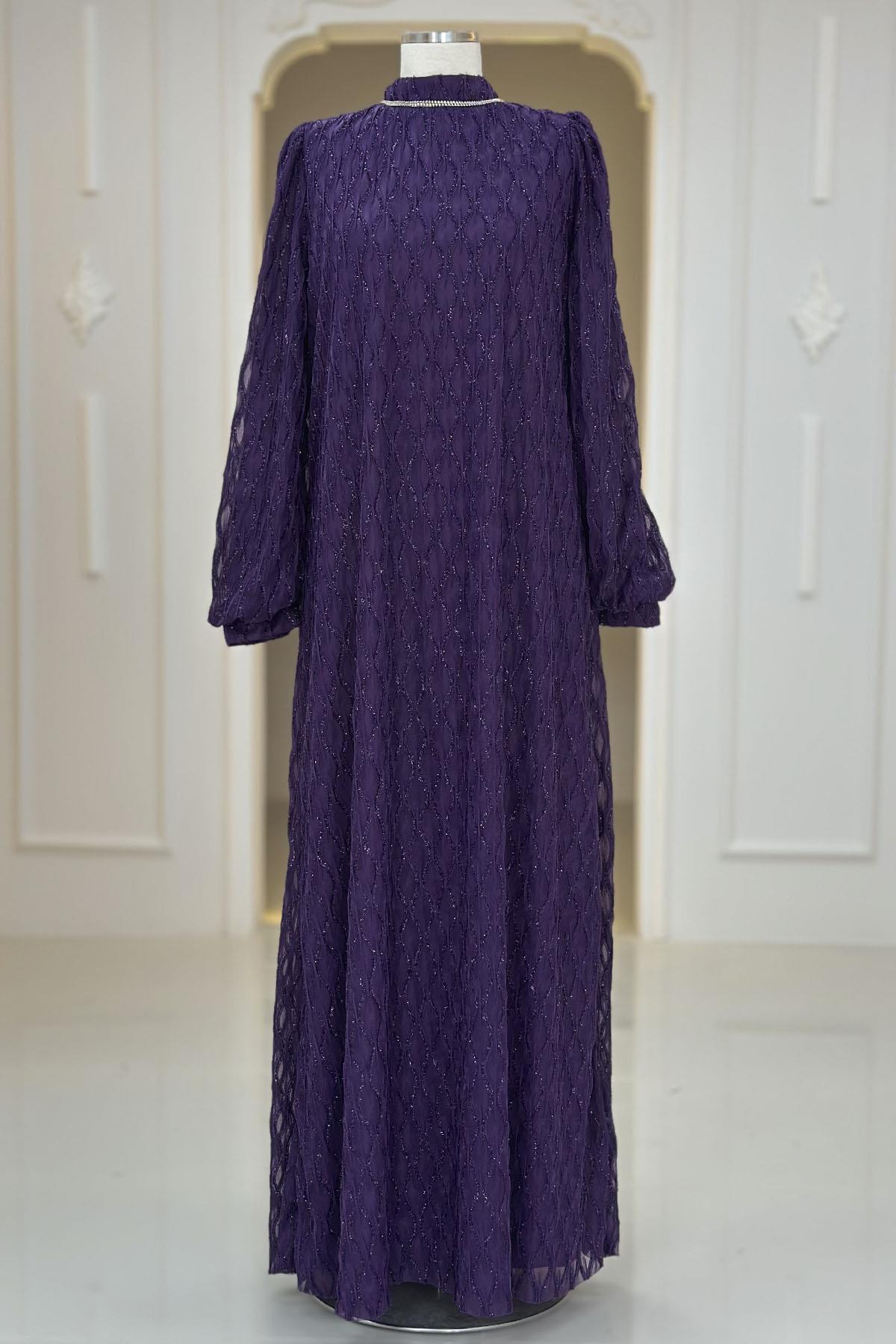 Amine Hüma Ravza Abiye Elbise Mürdüm (3641)