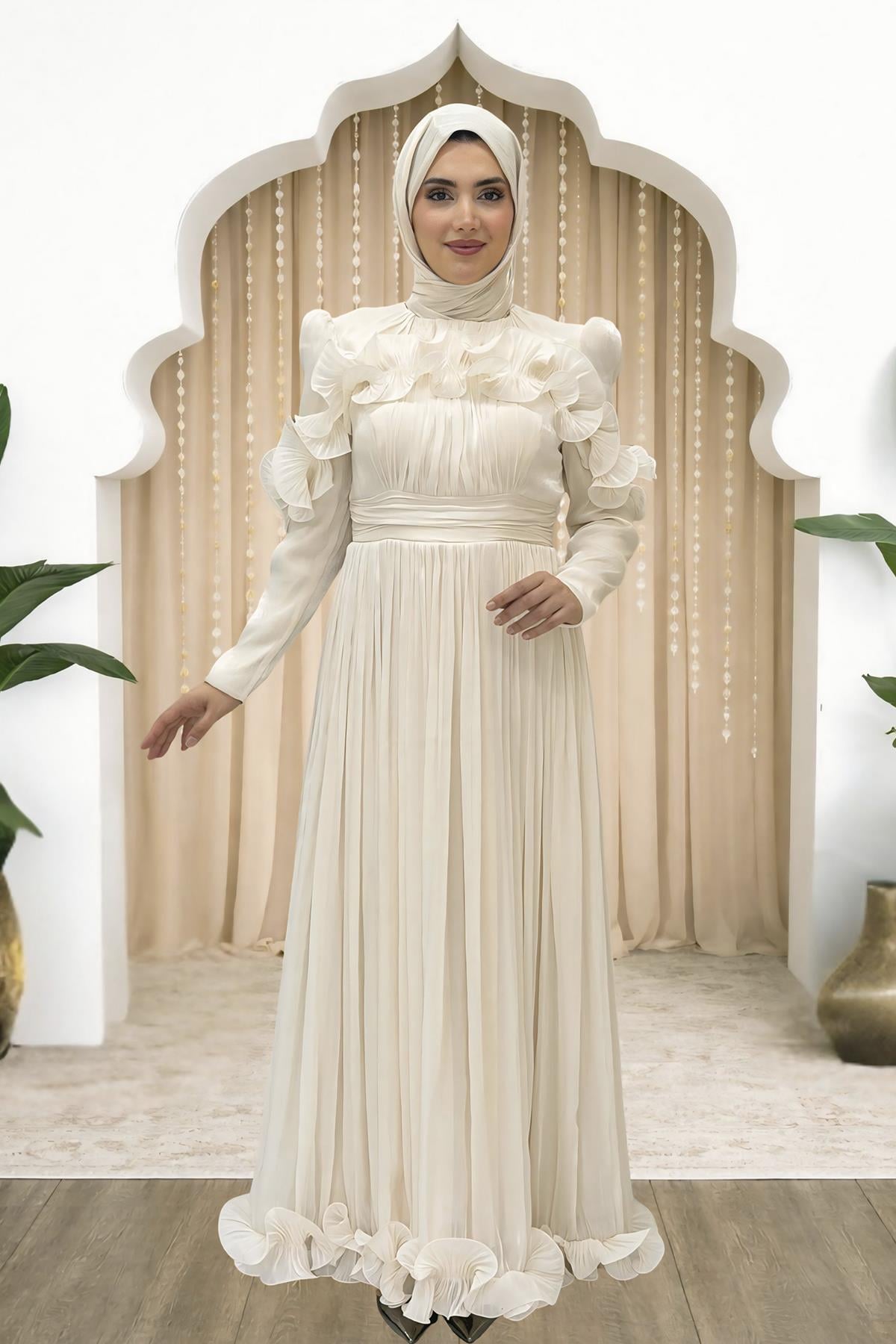 Amine Hüma Beliz Abiye Elbise Krem (3665)