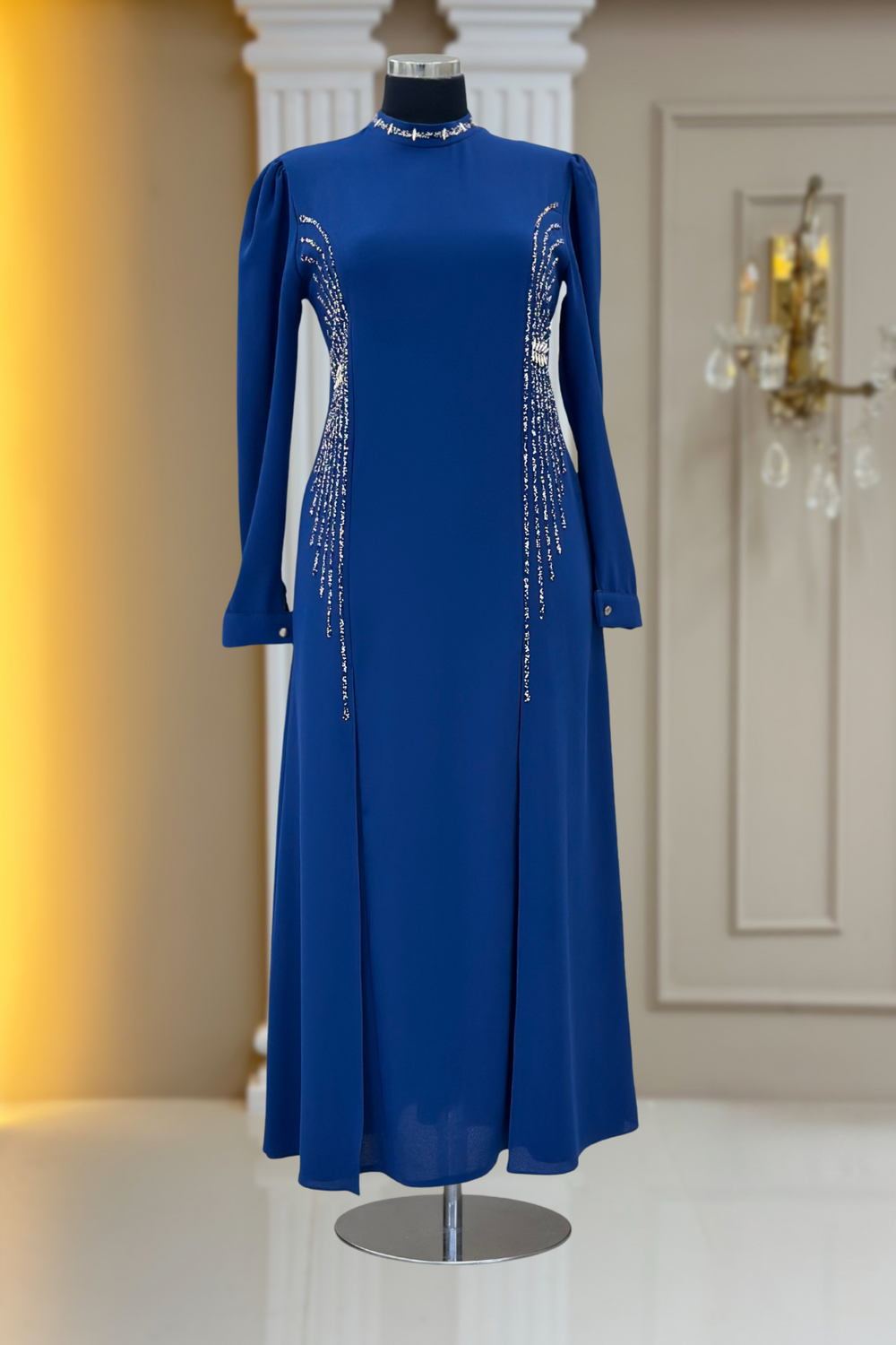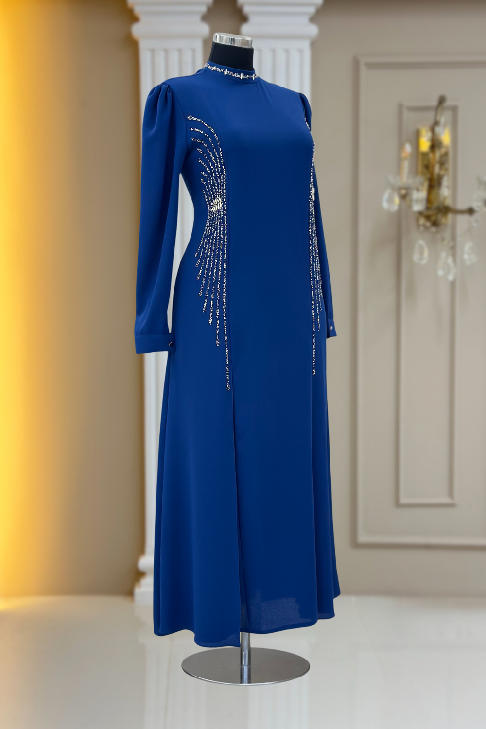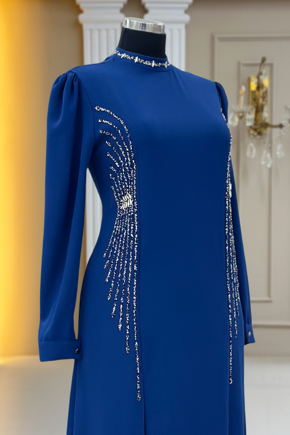 Amine Hüma Duru Abiye Elbise İndigo (E-1380)