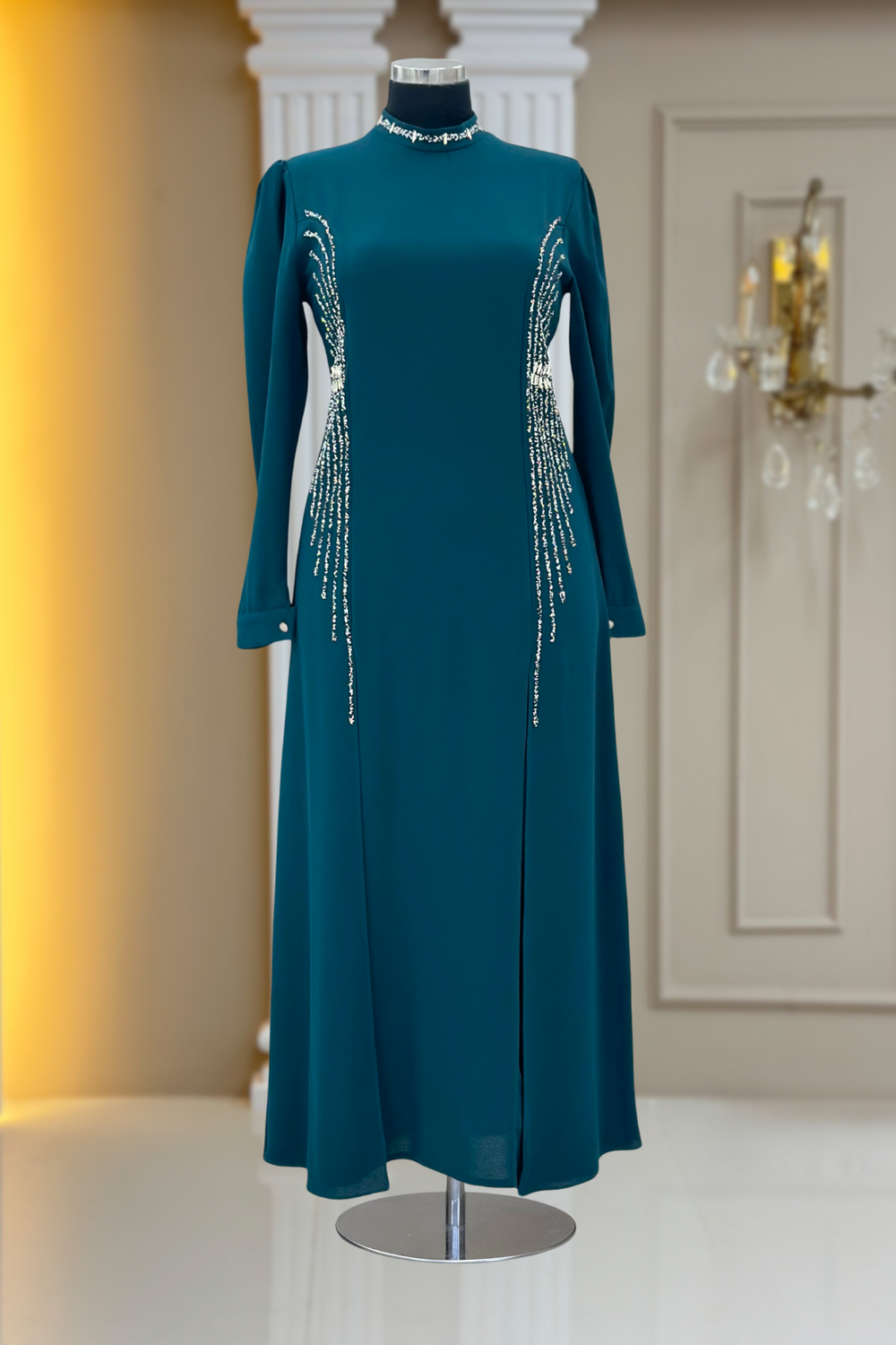 Amine Hüma Duru Abiye Elbise Petrol (E-1380)