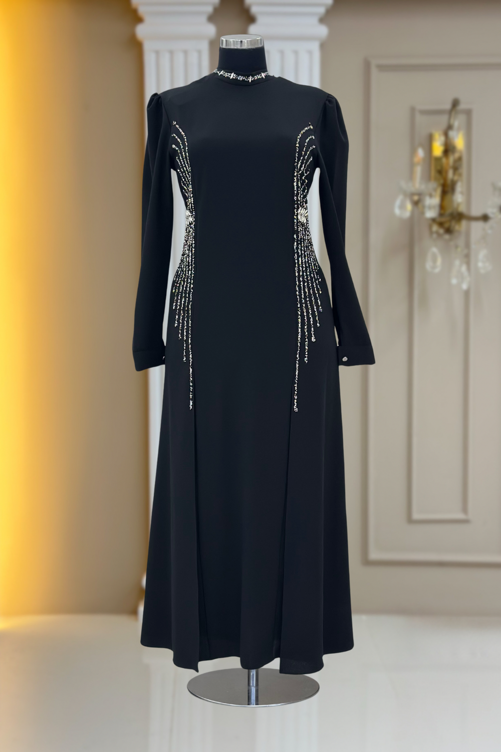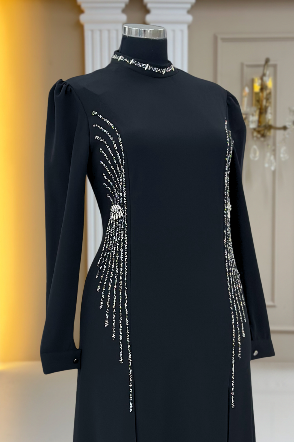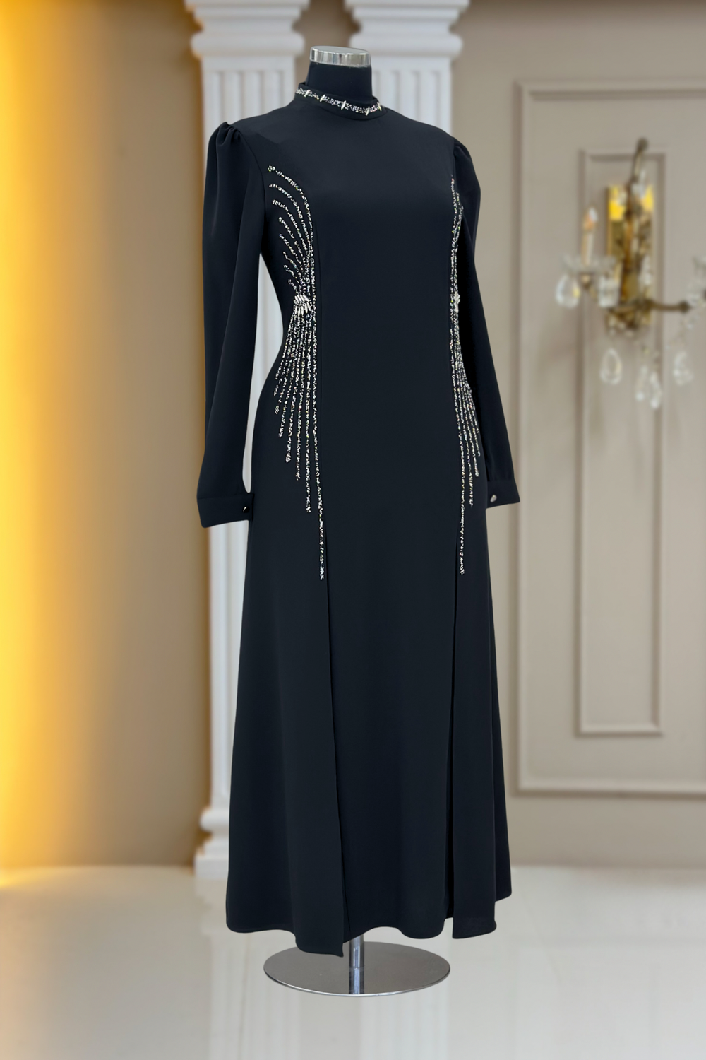 Amine Hüma Duru Abiye Elbise Siyah (E-1380)