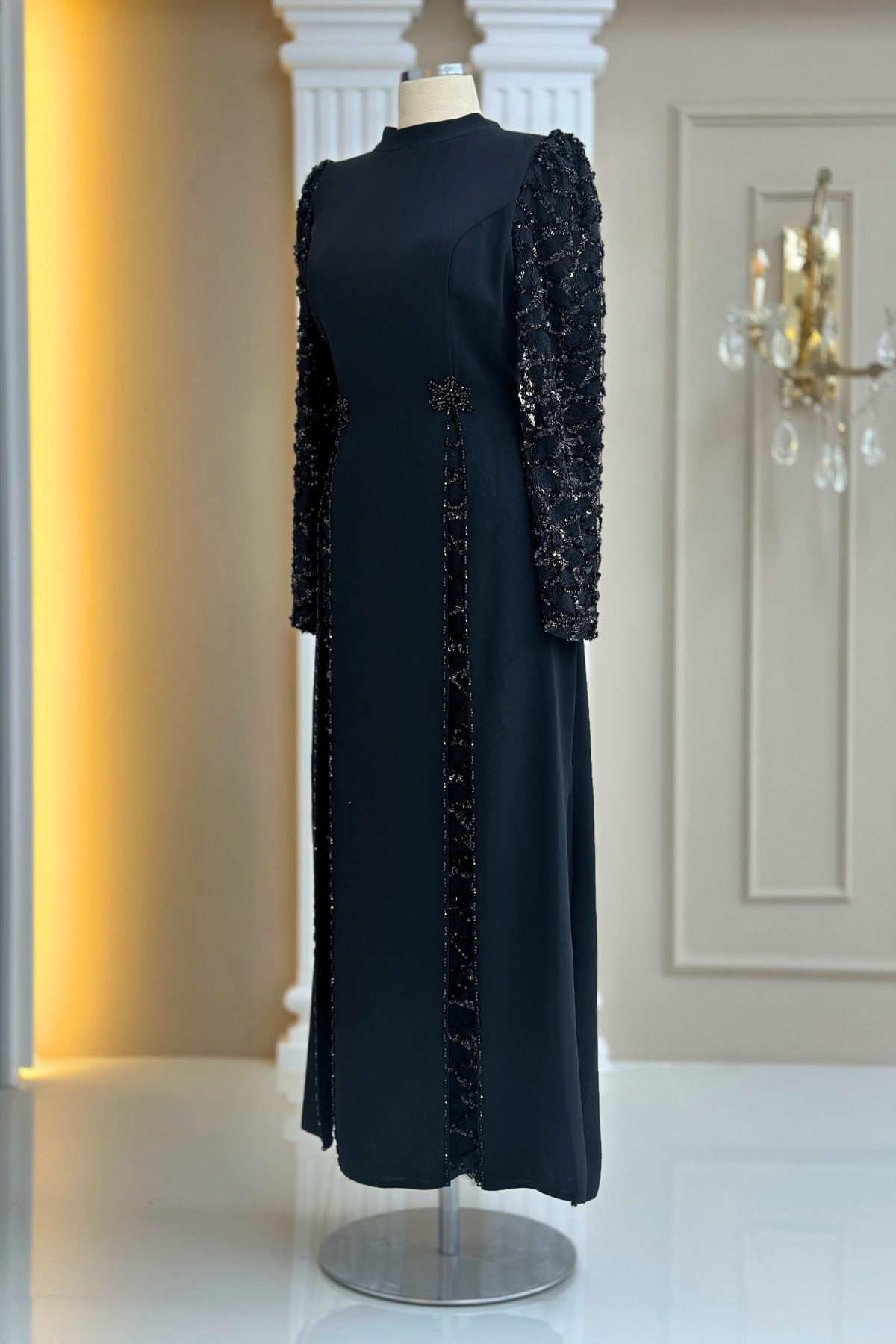 Amine Hüma Tusem Abiye Elbise Siyah (3646)