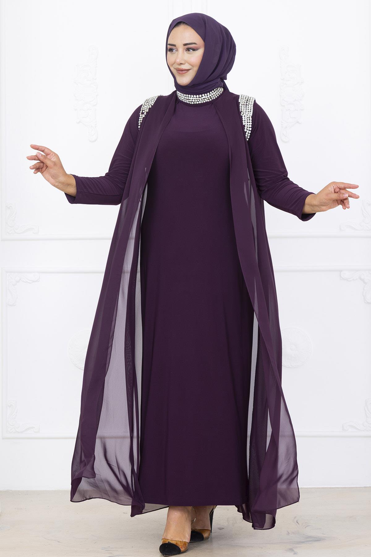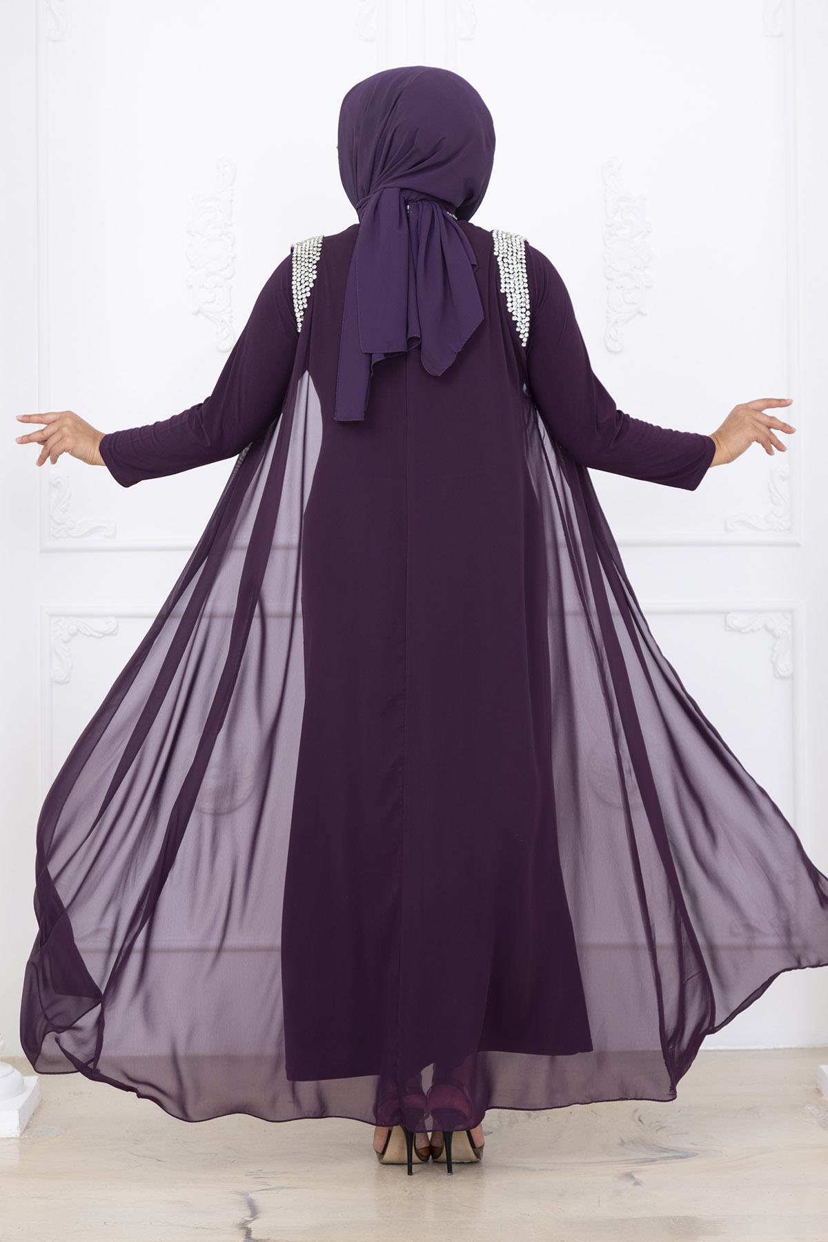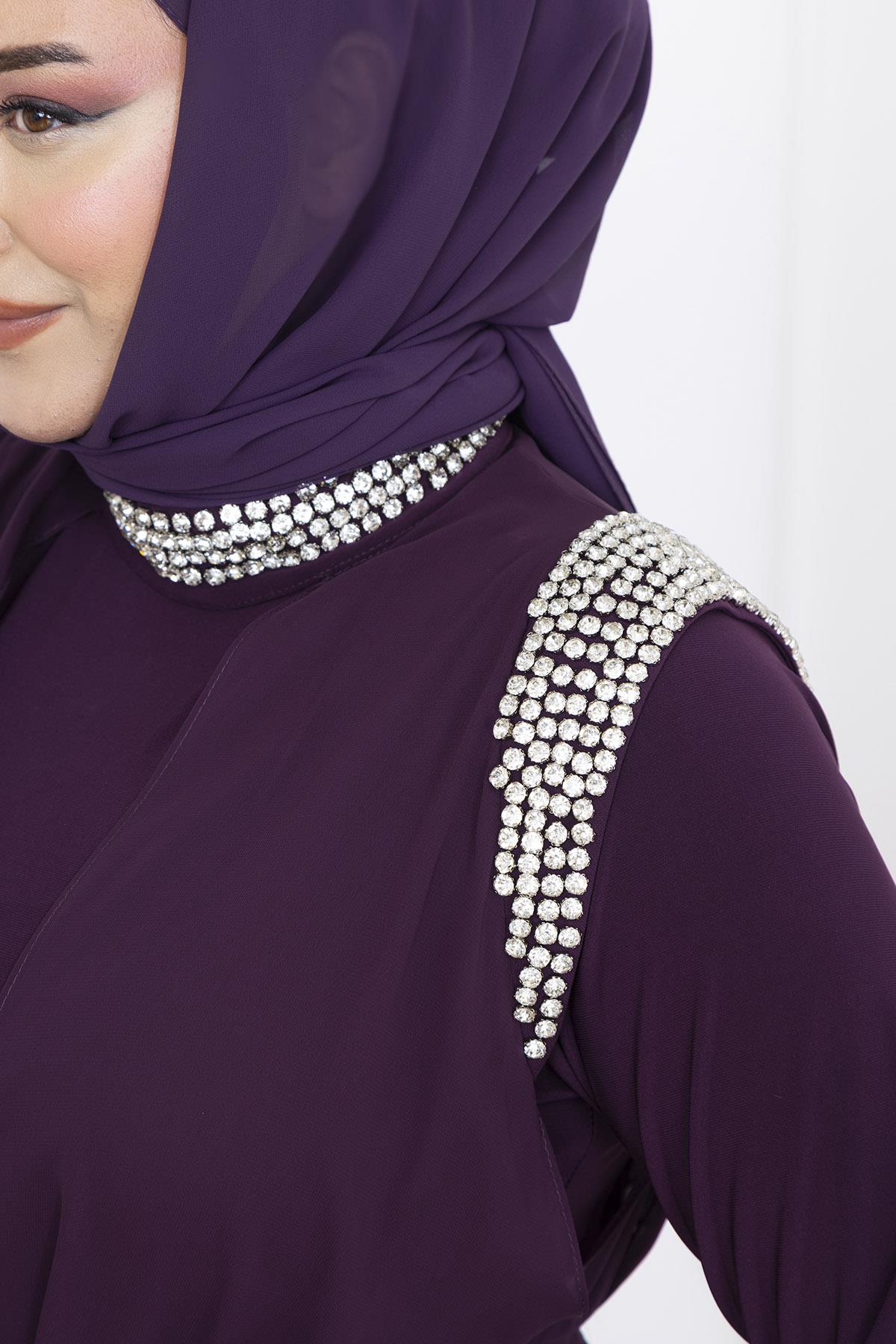 Amine Hüma Zambak Abiye Elbise Mürdüm (E-1371)
