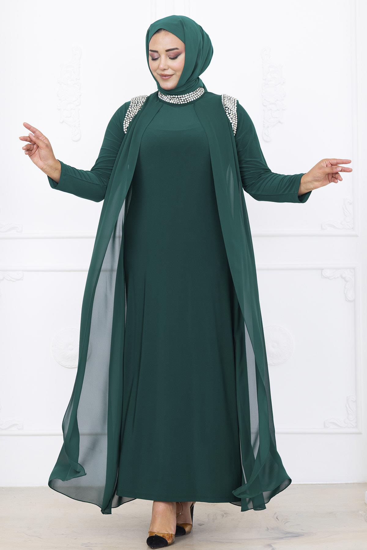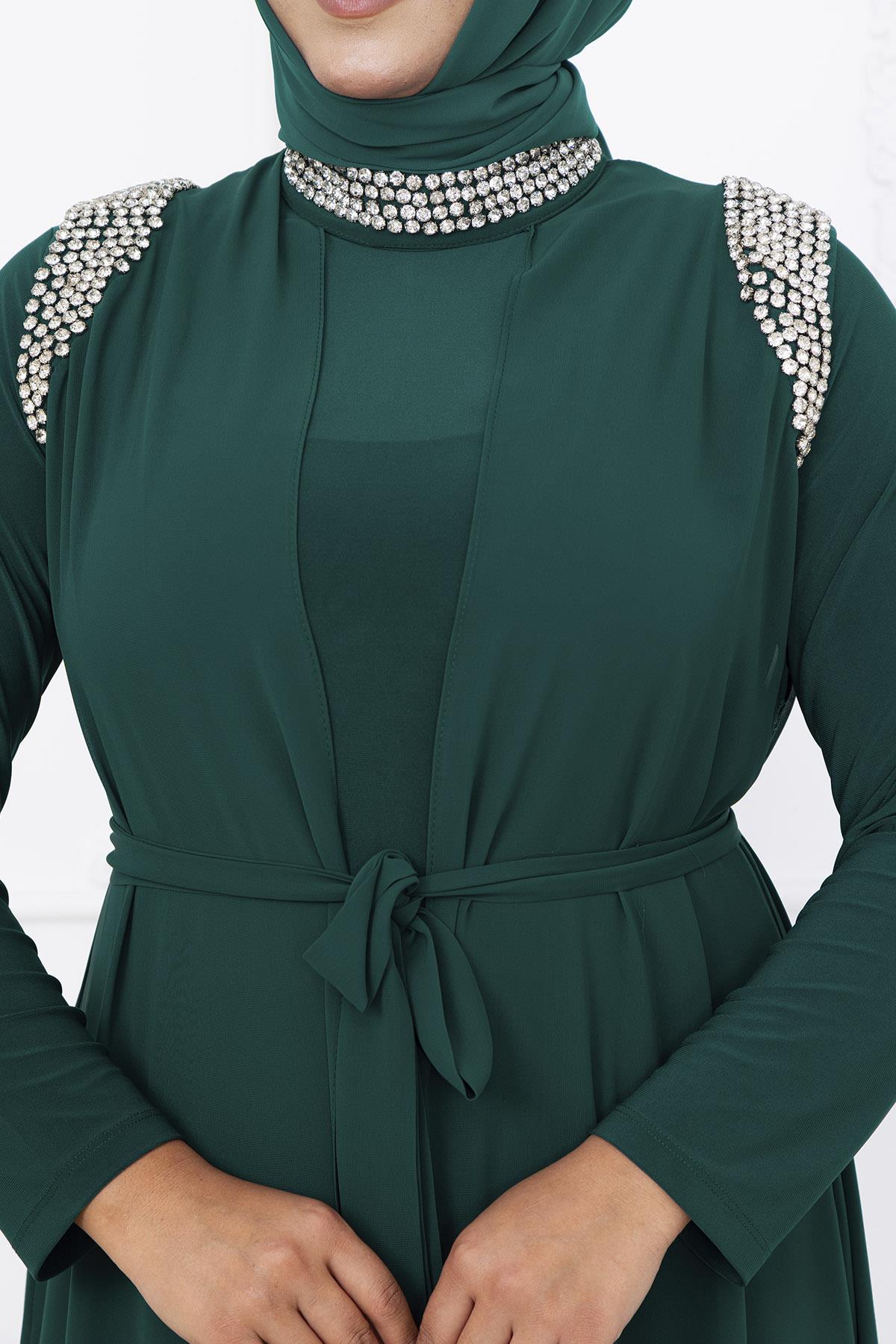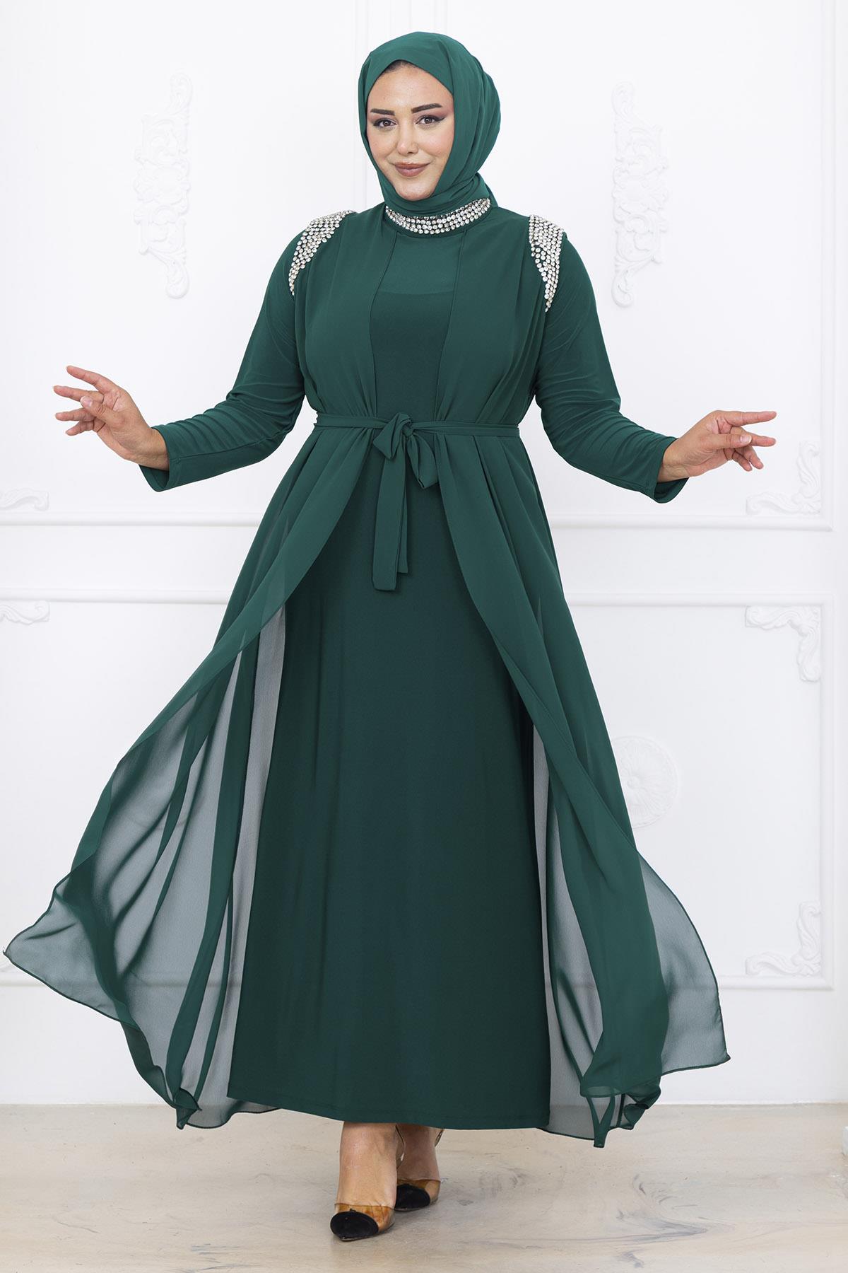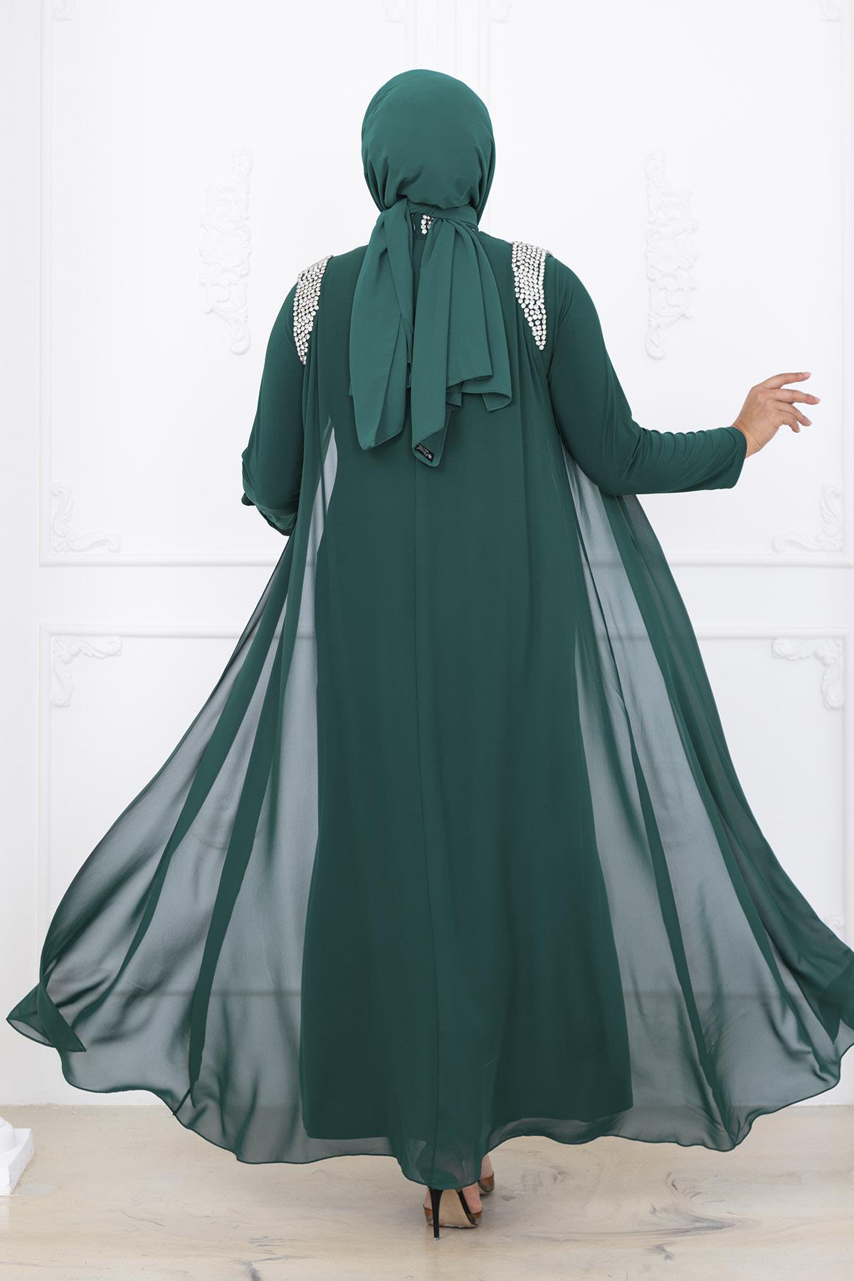 Amine Hüma Zambak Abiye Elbise Zümrüt (E-1371)