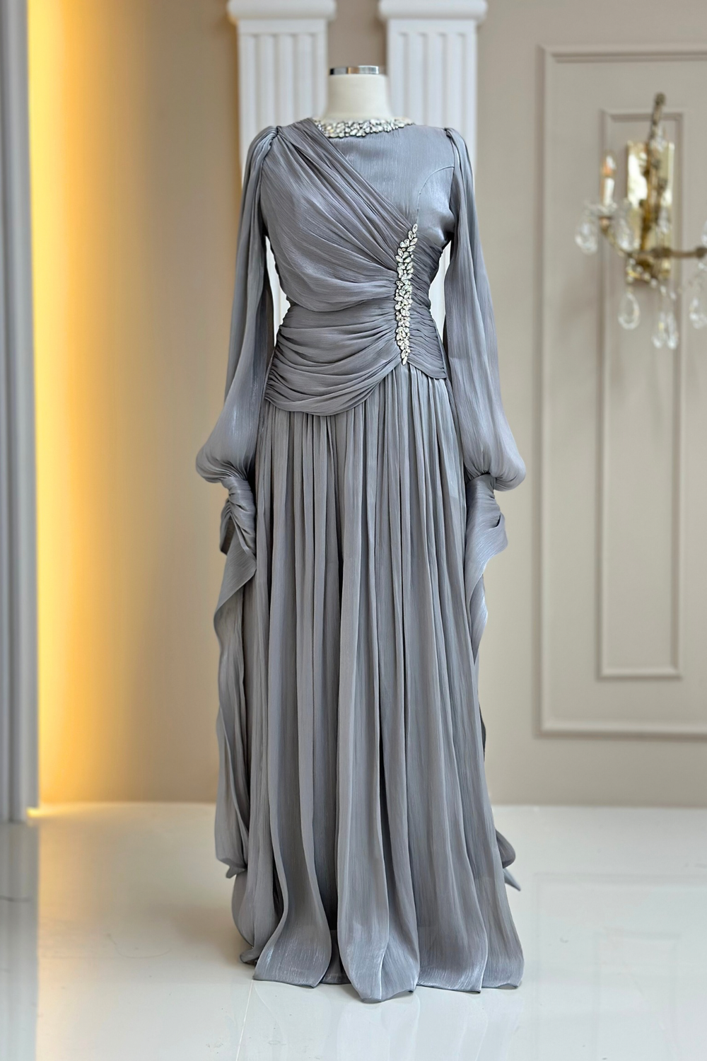 Bade Abiye Elbise Gri (3650)